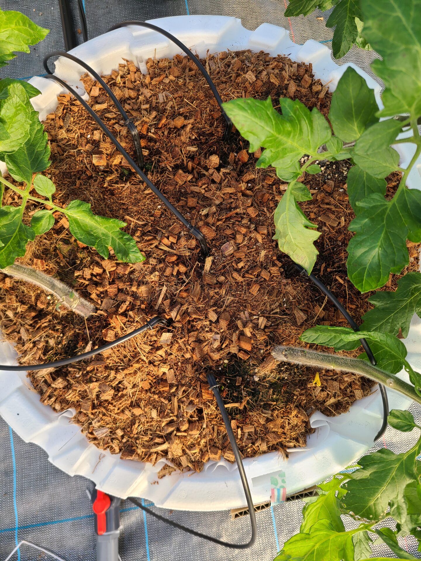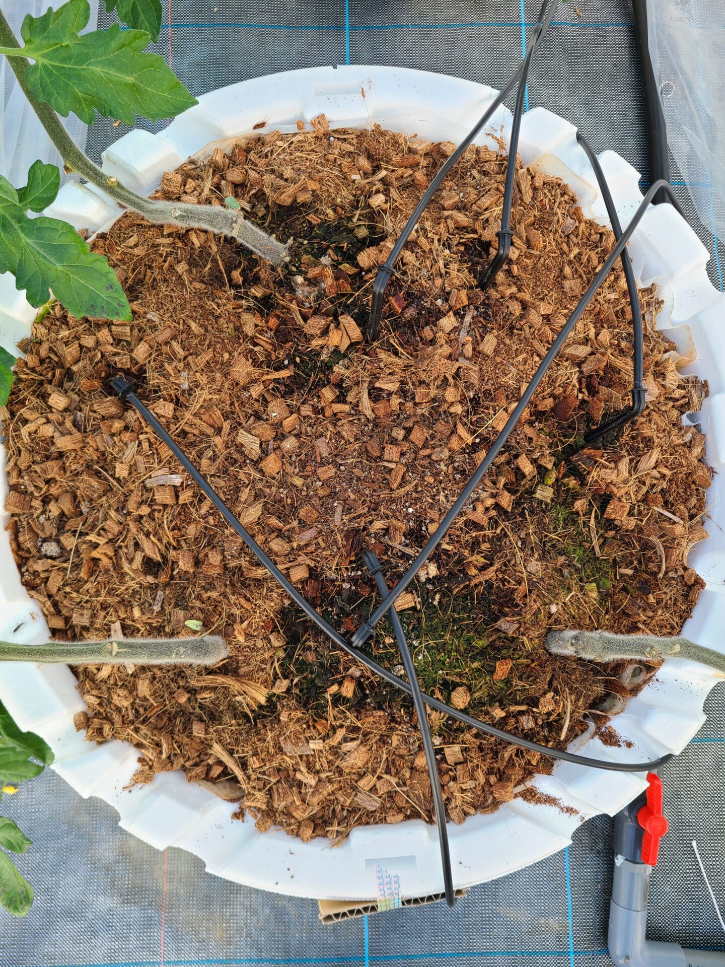 新葉も少し外巻きねじれ、欠乏症無し、葉から水は出ていない