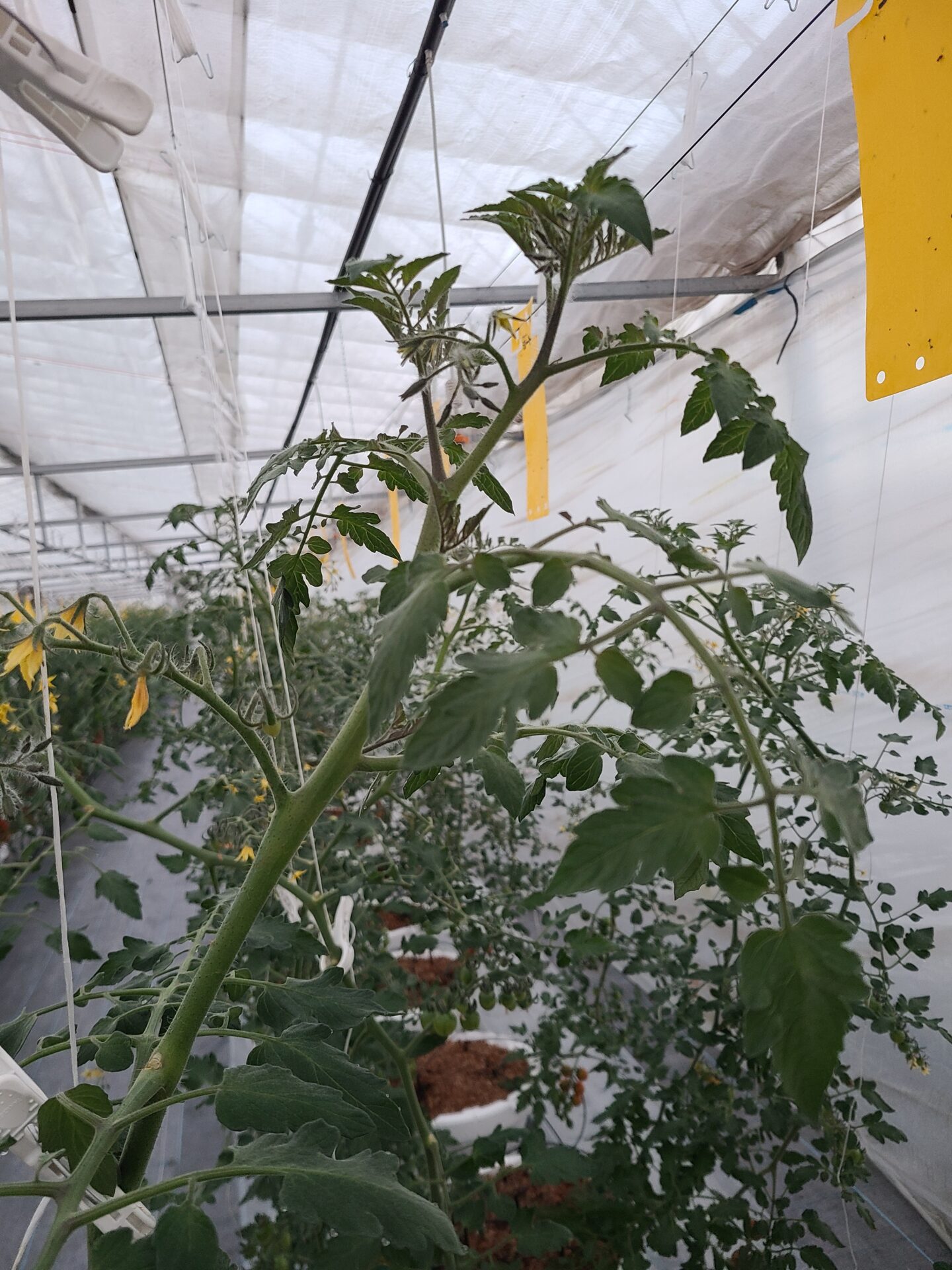 新葉は正常少し巻き、欠乏症無し、葉から水は出ていない
