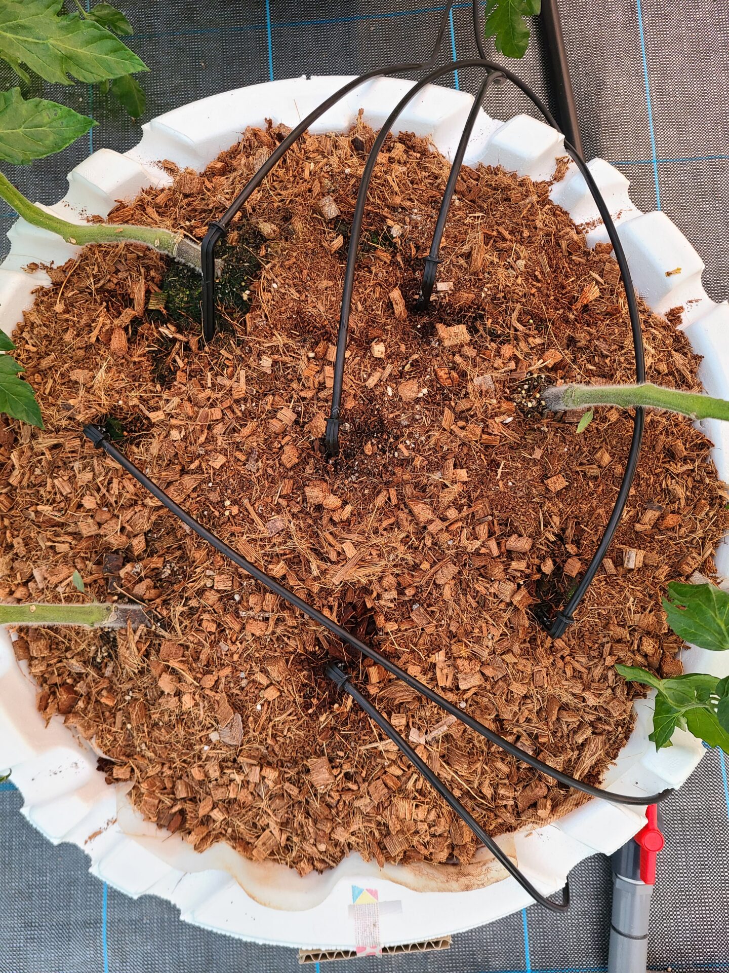 新葉も少し外巻きねじれ、欠乏症無し、葉から水は出ていない