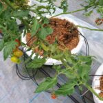 下の葉が枯れている株がある、葉から水が出ている