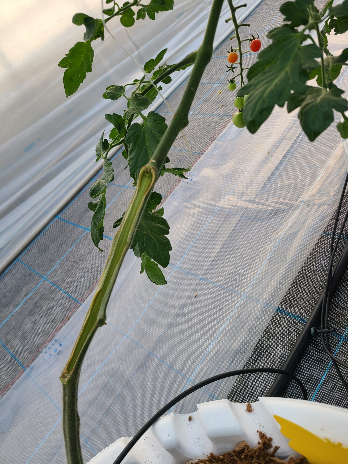 下の葉が枯れている株がある、葉から水が出ていない。